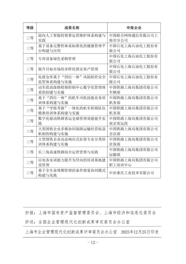 关于发布2025年上海市企业管理现代化创新成果的通知